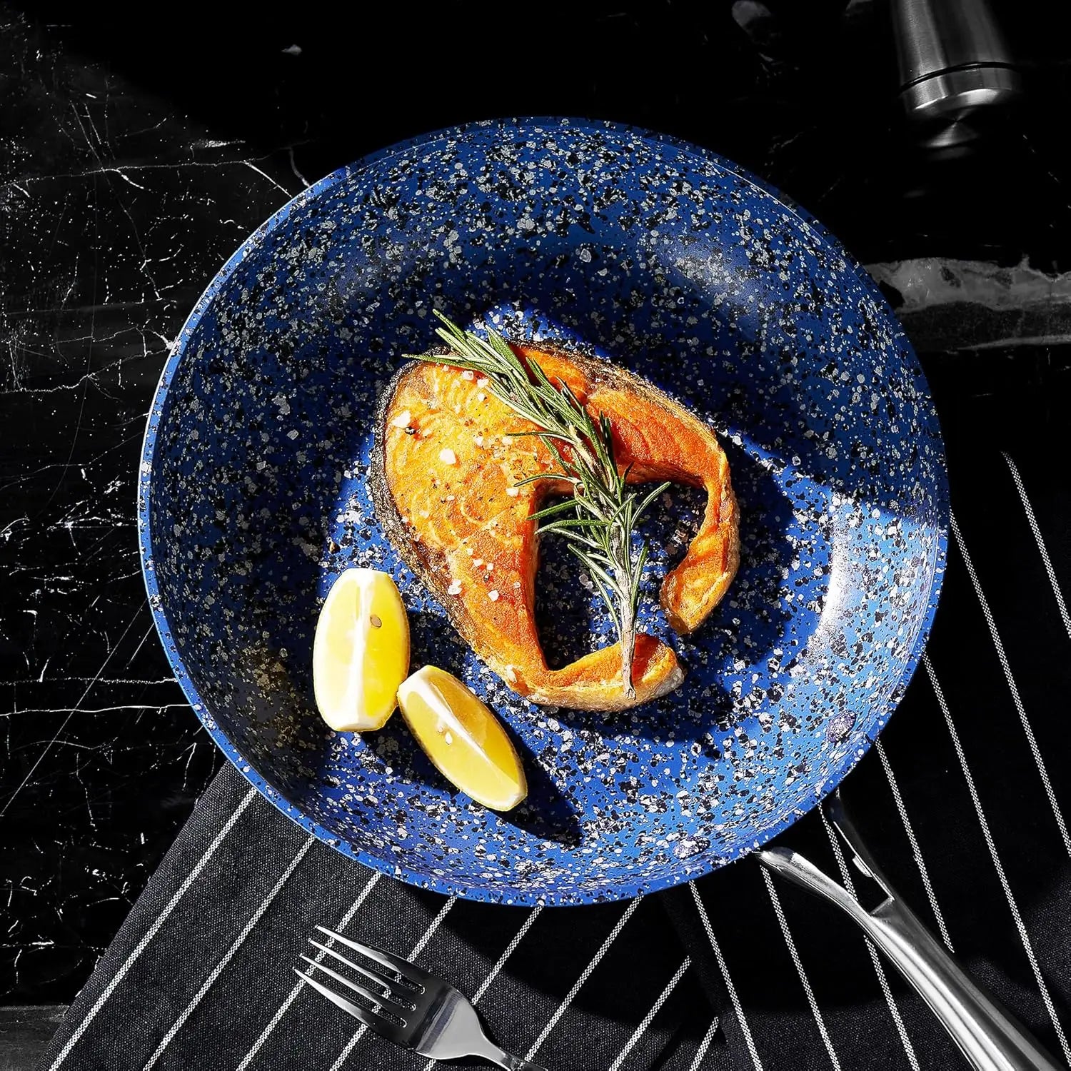 HEALTHY & NON-TOXIC - 10 inch multi-purpose frying pan is satisfied with daily cooking. The natural non-stick granite coating is free of PFOA, PFOS, lead & cadmium for a healthier and more convenient cooking experience everyday.