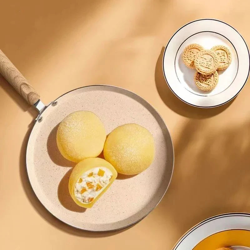 The pan features the optimal material, which is featured by the non-stick coating of Medical stone, bake lite handle, and the pan is non-stick, abrasion-resistant and durable, and the pan features the beautiful and elegant wood grain texture, and the pan features the heat insulation and anti-scalding, comfortable grip.