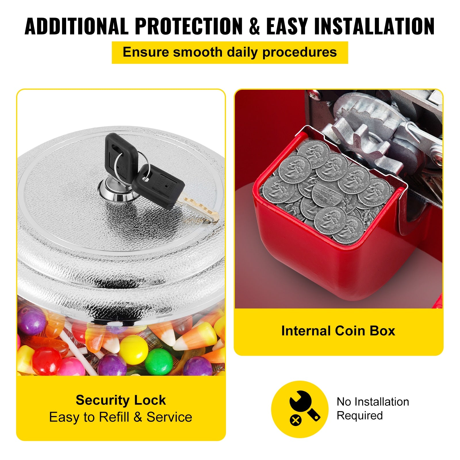 - Capacity: 375pcs gumballs(1")/10lbs' candy