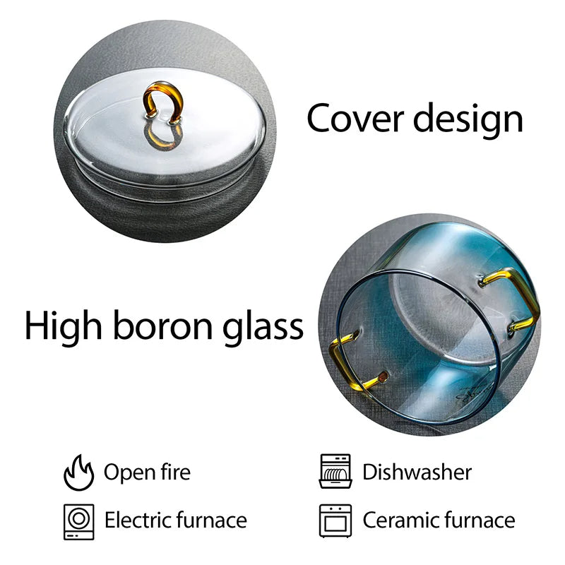 The gradient color design of this glass saucepan pot with cover adds a touch of style to your kitchen, elevating the visual appeal of your cooking space. The Kitchen Groups Heat-resistant Casserole is crafted from heat-resistant glass This casserole is not only a feast for the eyes but also a reliable companion for a variety of cooking tasks.