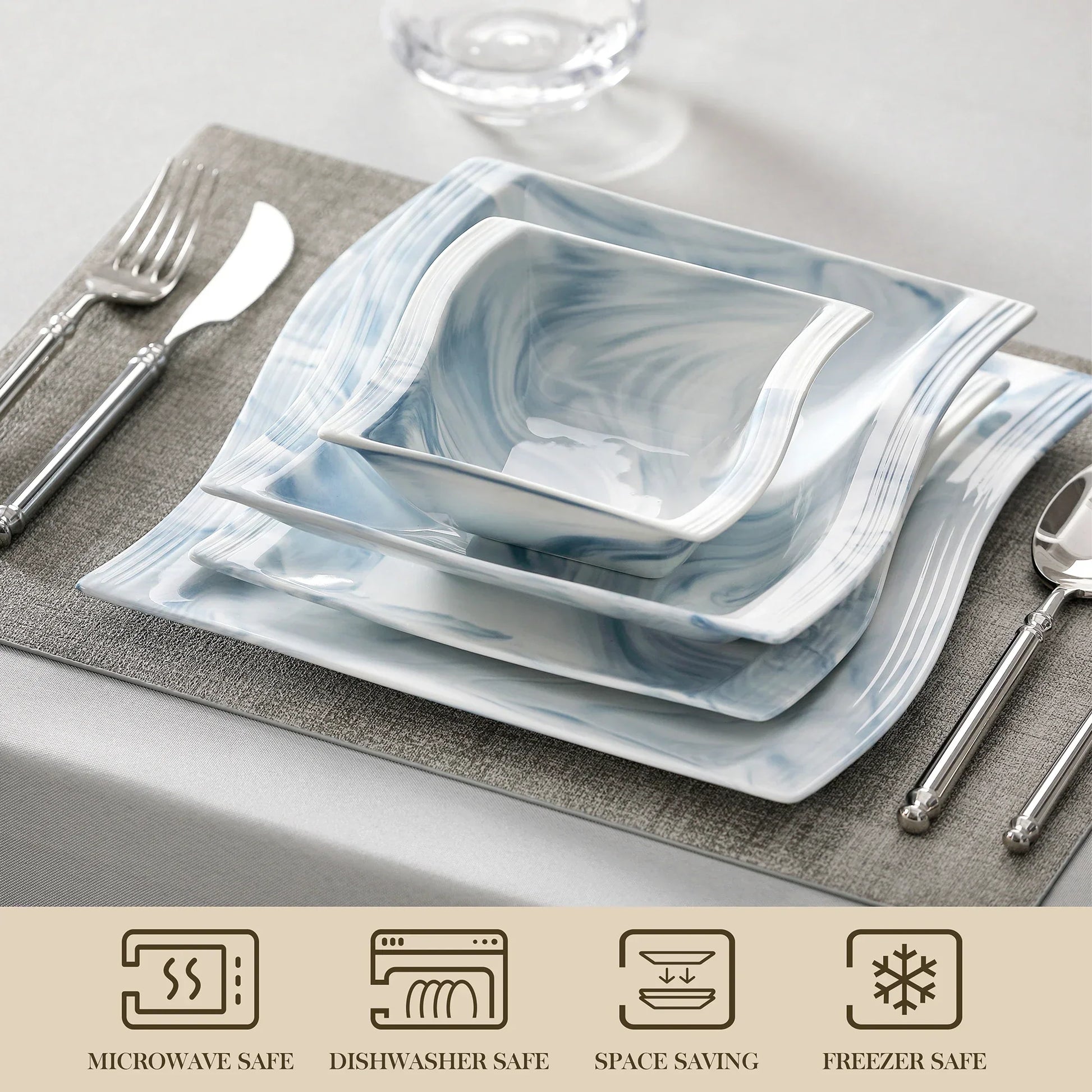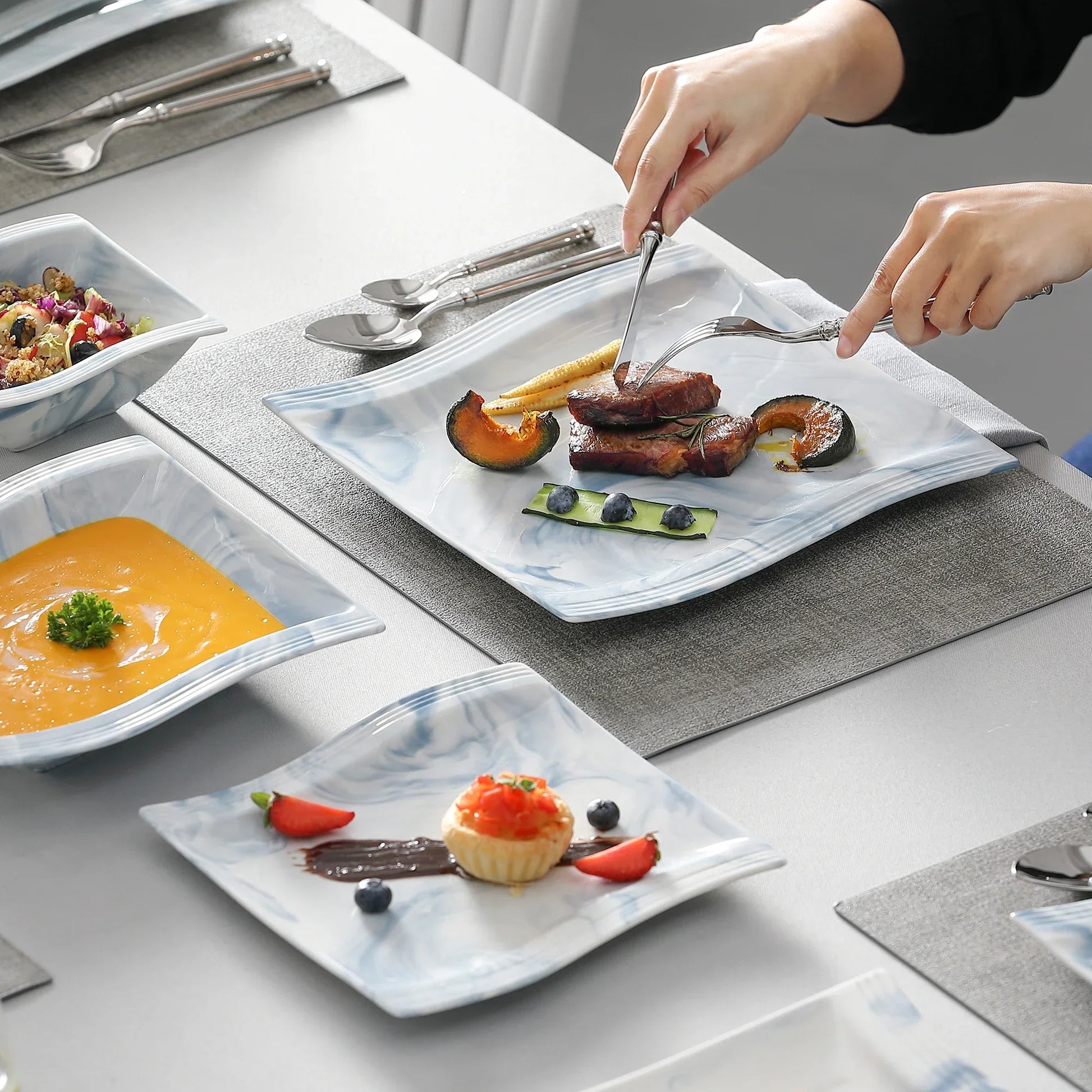 26pcs Nordic Marble Ceramic Tableware with Bowl Plate Soup Set