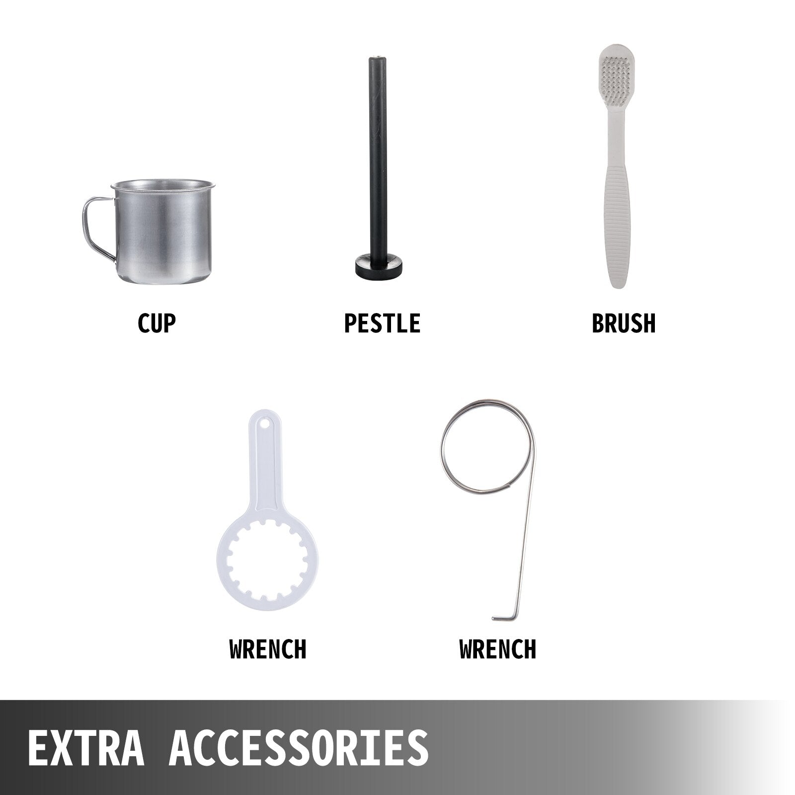 - MULTI-FUNCTIONAL ACCESSORIES- A cup included for collecting juice; a pestle for quick feeding of material; a wrench for opening the front cover; a hook for pulling out the filter; a brush for easy cleaning; a spare filter, a sealing ring, and a PA shaft sleeve are also included.