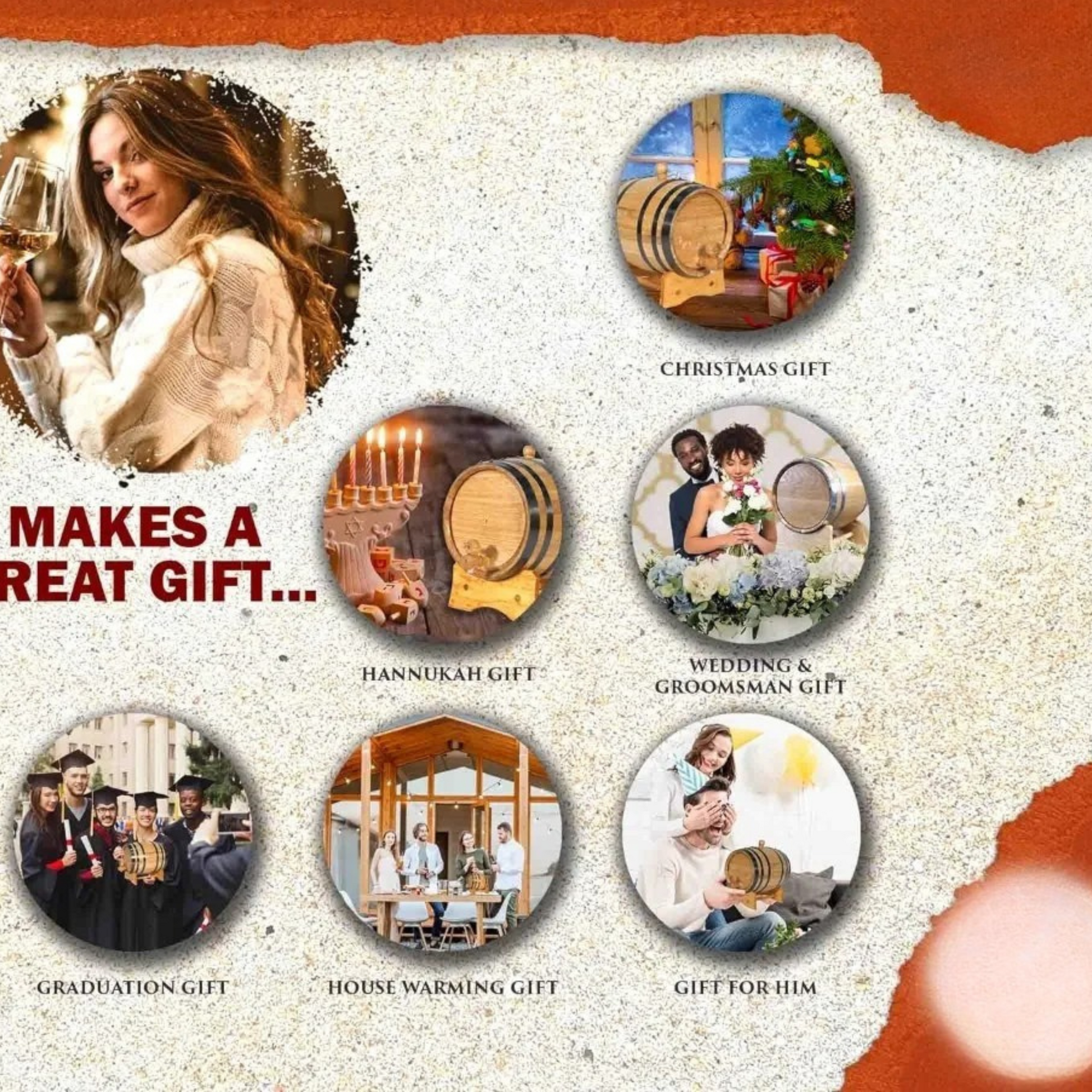 - Premium oak barrel construction: Made from high-quality oak wood to naturally enhance flavor and aroma during the aging process.