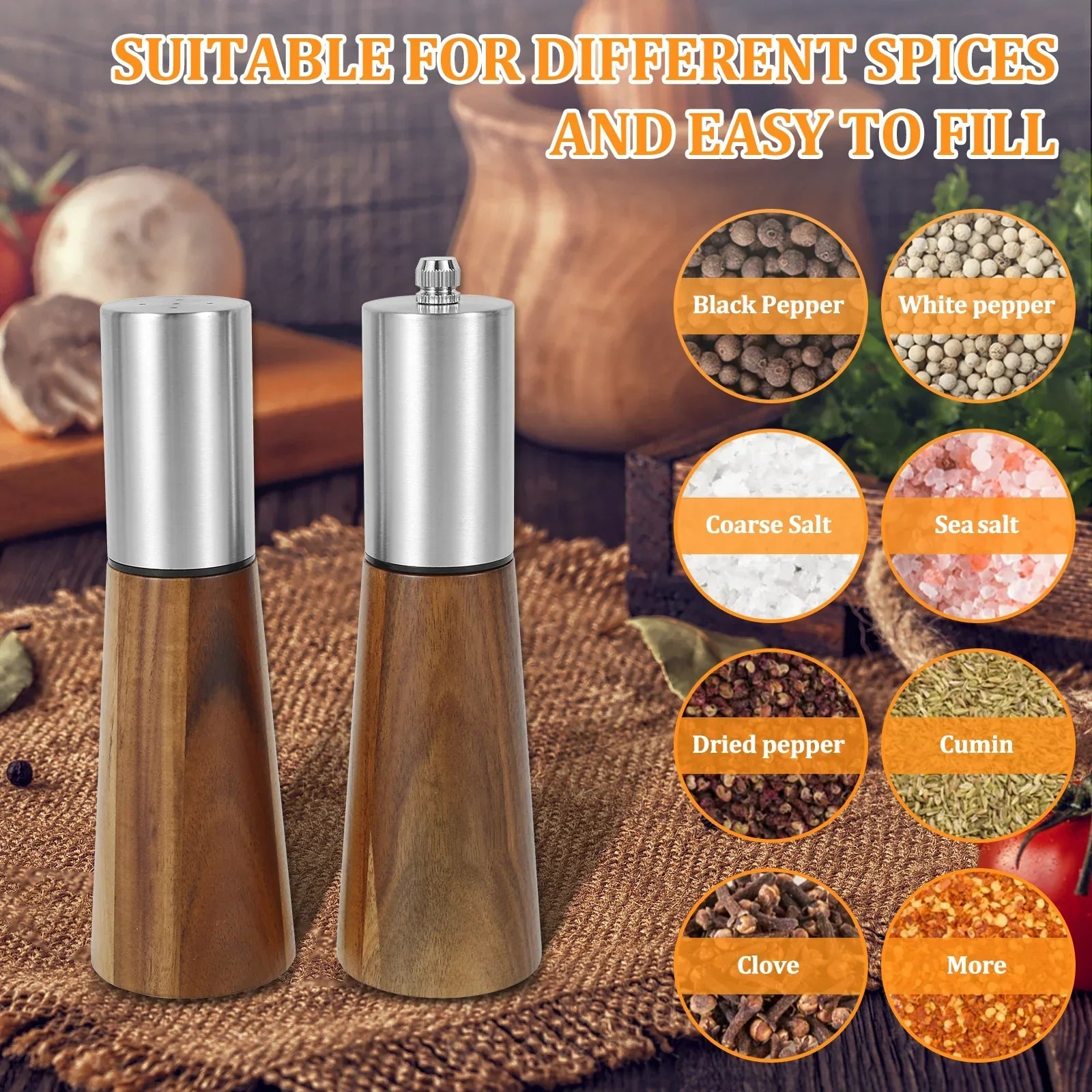 Refillable Acacia Wood Salt Shaker and Pepper Spice Mill Grinder Set