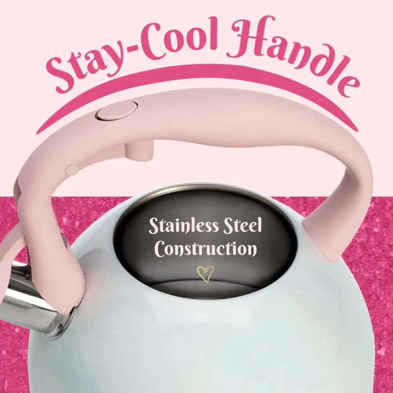 Add a pop of color and elegance to your kitchen with the Stainless Steel Whistling Spout Tea Kettle Kitchen Stovetop Kettle from Kitchen Groups. This eye-catching kettle combines vibrant style with everyday functionality, featuring a classic whistling spout and durable stainless steel construction.